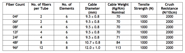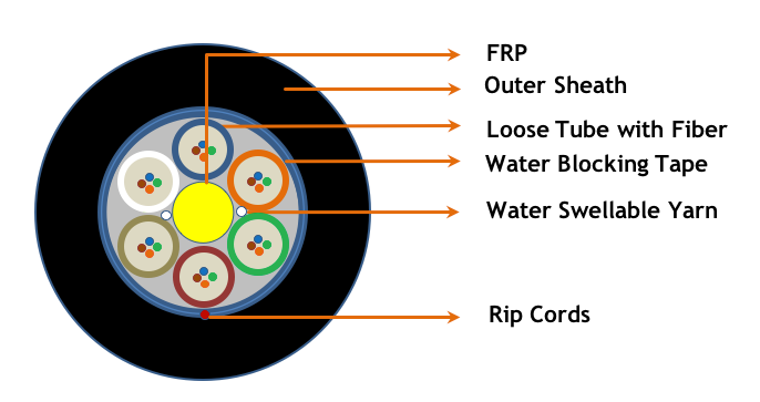 Un-armored Multi-tube cable with a Single Jacket is suitable for duct applications. This cable is a stranded Loose tube cable with Optic fibers are placed inside the robust buffer tube. Stranded around the fiber-reinforced plastic (FRP) central strength member. Loose tubes contain water blocking jelly and cable core surrounded with water blocking tape to prevent water ingress in the interstices of the cable core. The cable core is surrounded by HDPE/LSZH jacket.